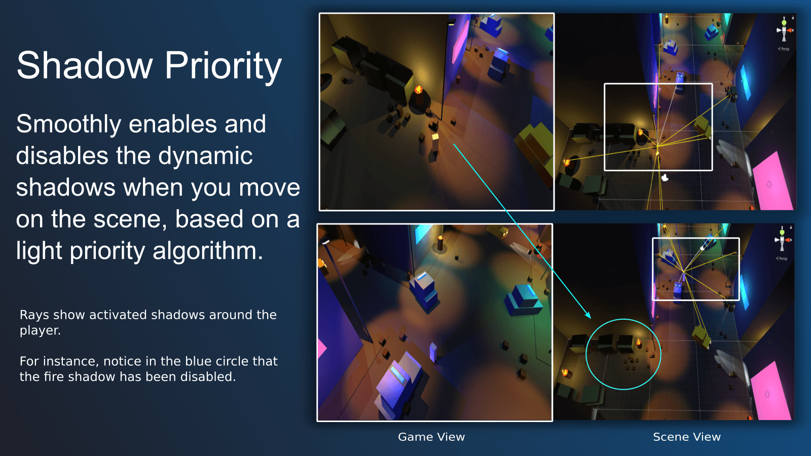 This allows to have a lot of dynamic shadows in the scene by automatically enabling only pertinent shadows and disabling others.